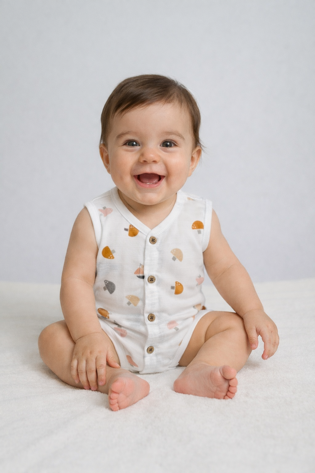 This baby sleeveless vest is crafted from high-quality 100% cotton fabric to provide gentle comfort for your little one. The lightweight and breathable material helps keep babies cool and relaxed throughout the day, making it ideal for daily wear.