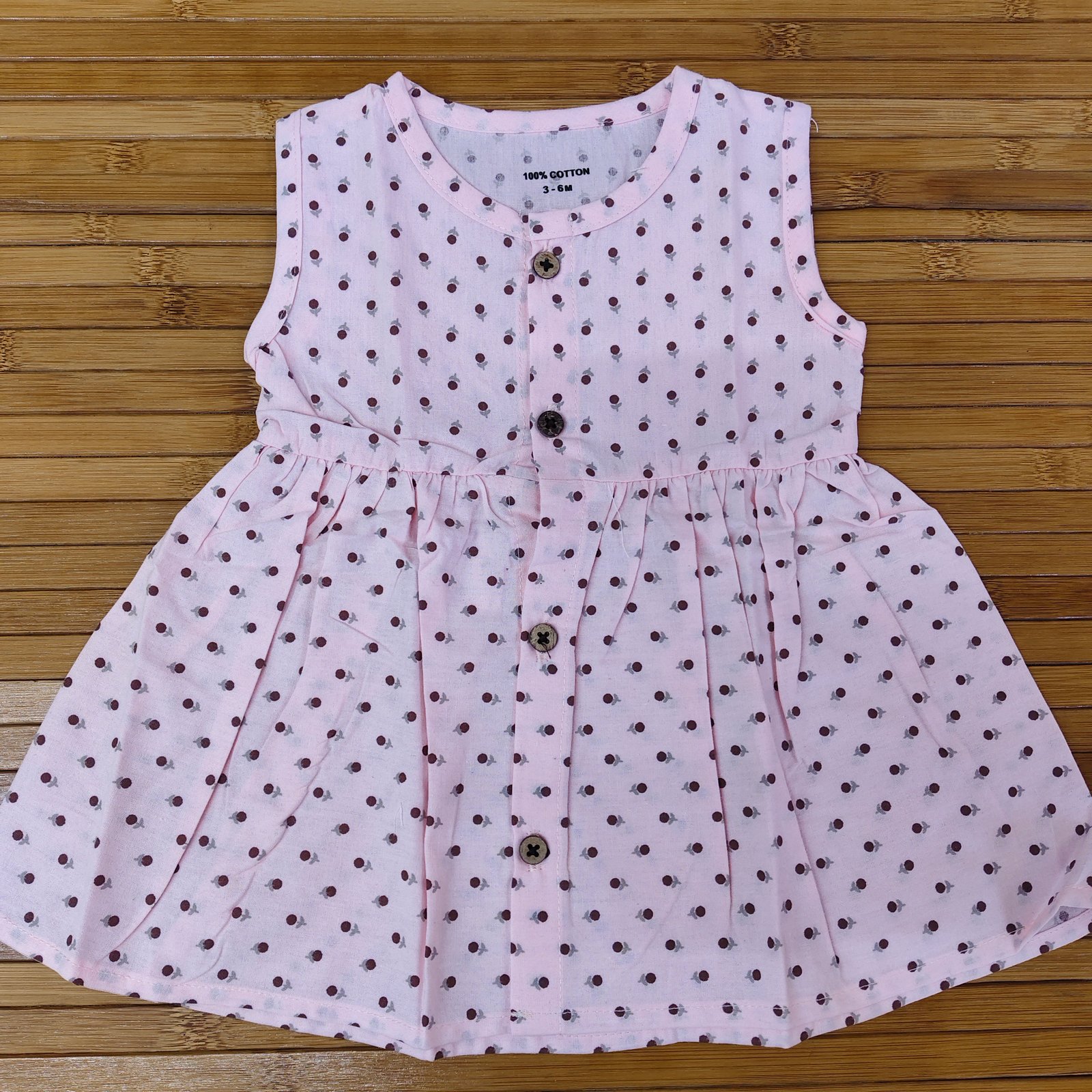 Soft Pink Cotton Frock with Cute Dot Print (NB to 1 YEAR )