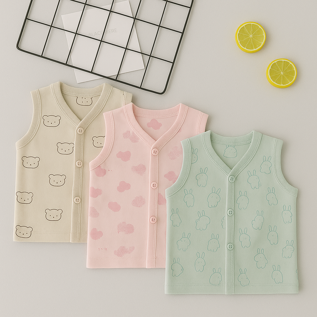 Keep your little one cozy and stylish with this Jabla Combo Set of 3. Specially designed for newborns and infants (0-6 months), each vest is made from ultra-soft cotton that’s gentle on delicate skin. These sleeveless jhablas feature a front tie/knot design for easy and fuss-free changing. With bright colors and charming prints, this set is a practical and delightful addition to your baby’s wardrobe. Whether it’s for daily use or a thoughtful baby shower gift, this combo offers comfort, style, and convenience in one.