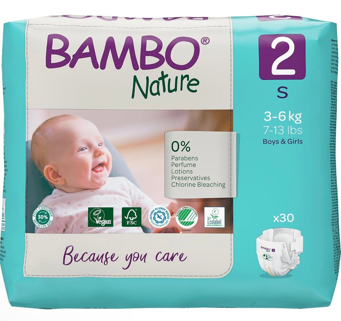 Bambo Nature Taped Diapers Size 2 (3–6 kg / 7–13 lbs) – Eco-Friendly Baby Diapers – 30 Pcs