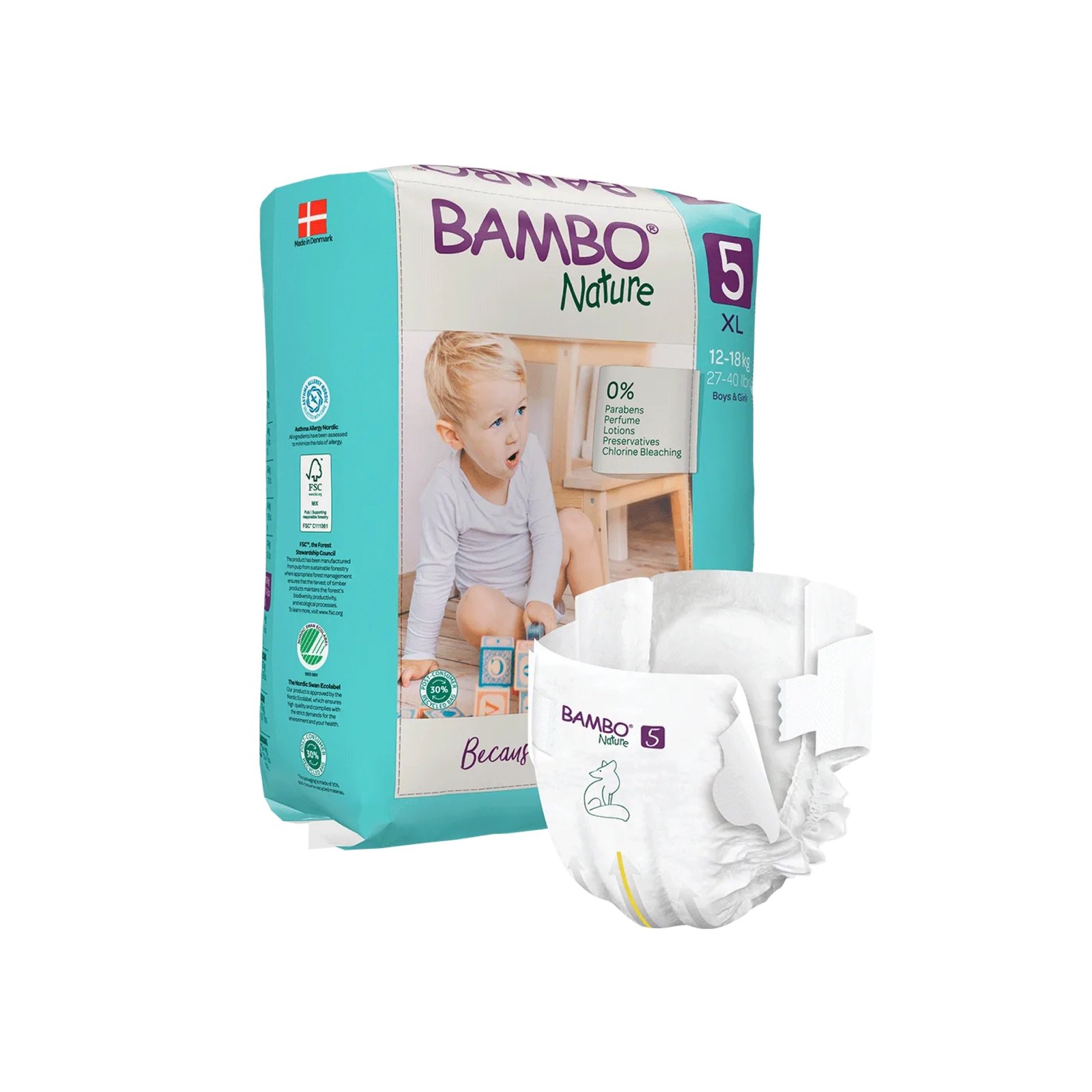 Bambo Nature Taped Diapers Size 5 (12–18 kg / 27–40 lbs) – Eco Baby Diapers – 22 Pcs