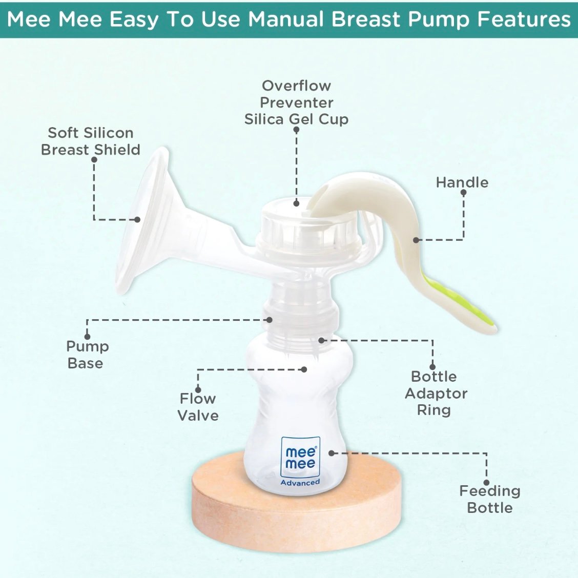 Breast milk is the perfect food containing vital proteins and energy that provide complete nourishment to every baby. Sometimes because of problems like the mother's flat or inverted nipples, breast swelling, baby's improper sucking or work commitments, the baby cannot be breastfed. A premium quality product designed with utmost sensitivity, Mee Mee's breast pump feeding system is a convenient option to nurture the child with breastmilk on time. Mothers need to simply express milk using the pump and store it in the feeding bottle. So the baby can be fed anytime, anywhere and grows up to be healthy and happy.