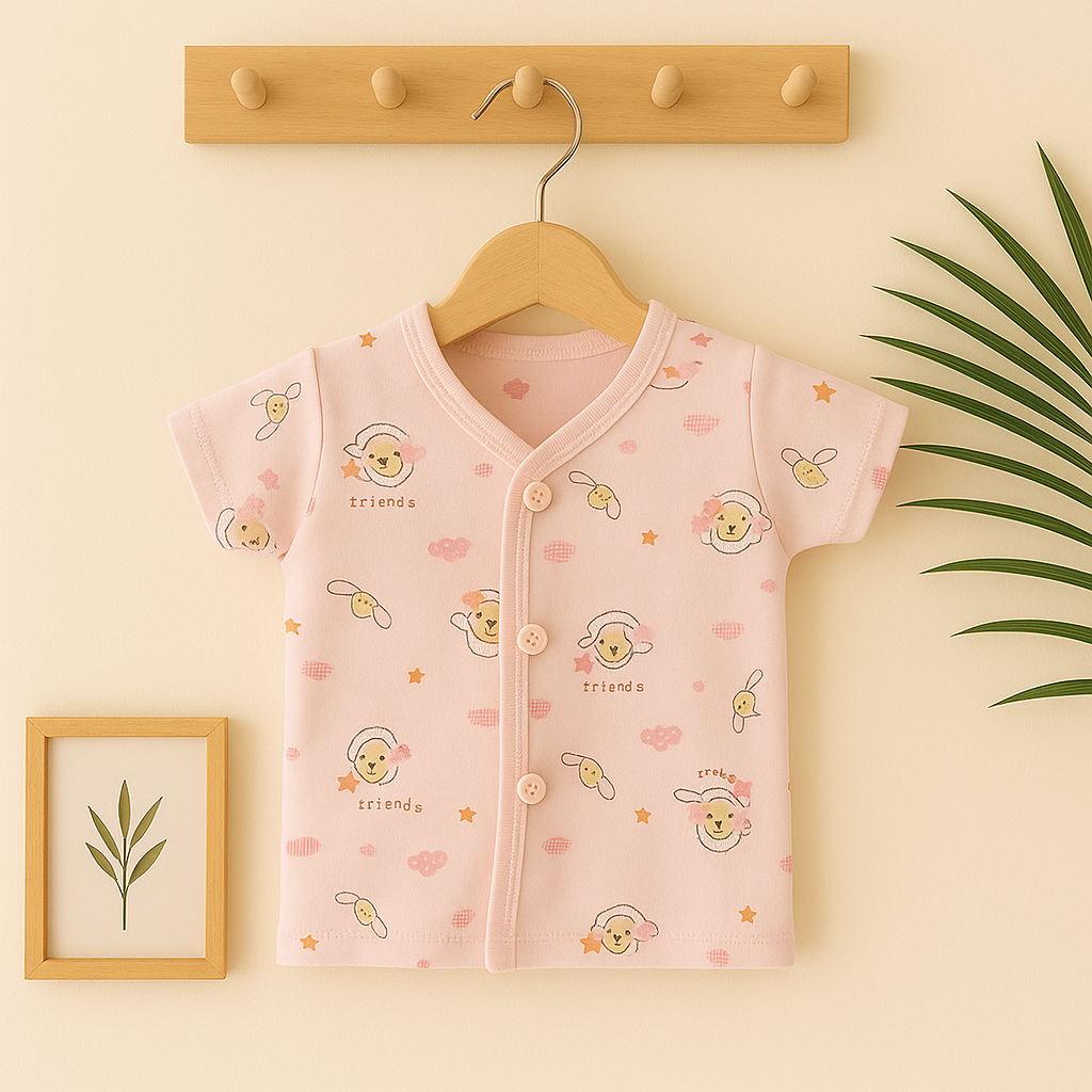 A must-have in every newborn's wardrobe, these short-sleeve tops are perfect for layering or wearing alone. Pair with soft nappies, shorts, or pajamas for a cozy and cute look.