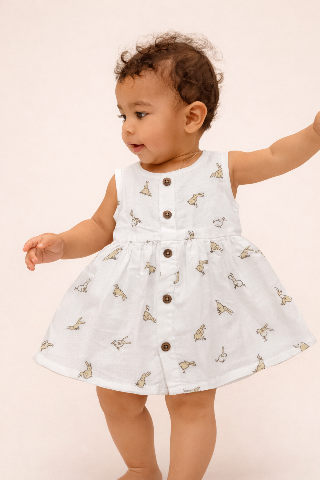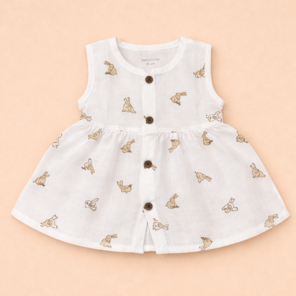 Rabbit Print Baby Girl Cotton Sleeveless Frock