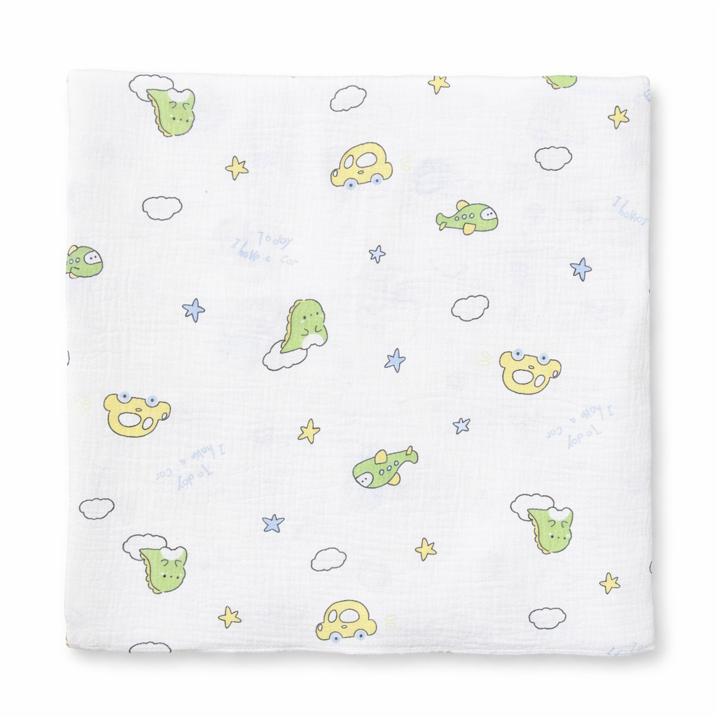 Dino Printed Crinkled Muslin Towel – Soft & Breathable Baby Bath Towel ( 75 * 75 CM )