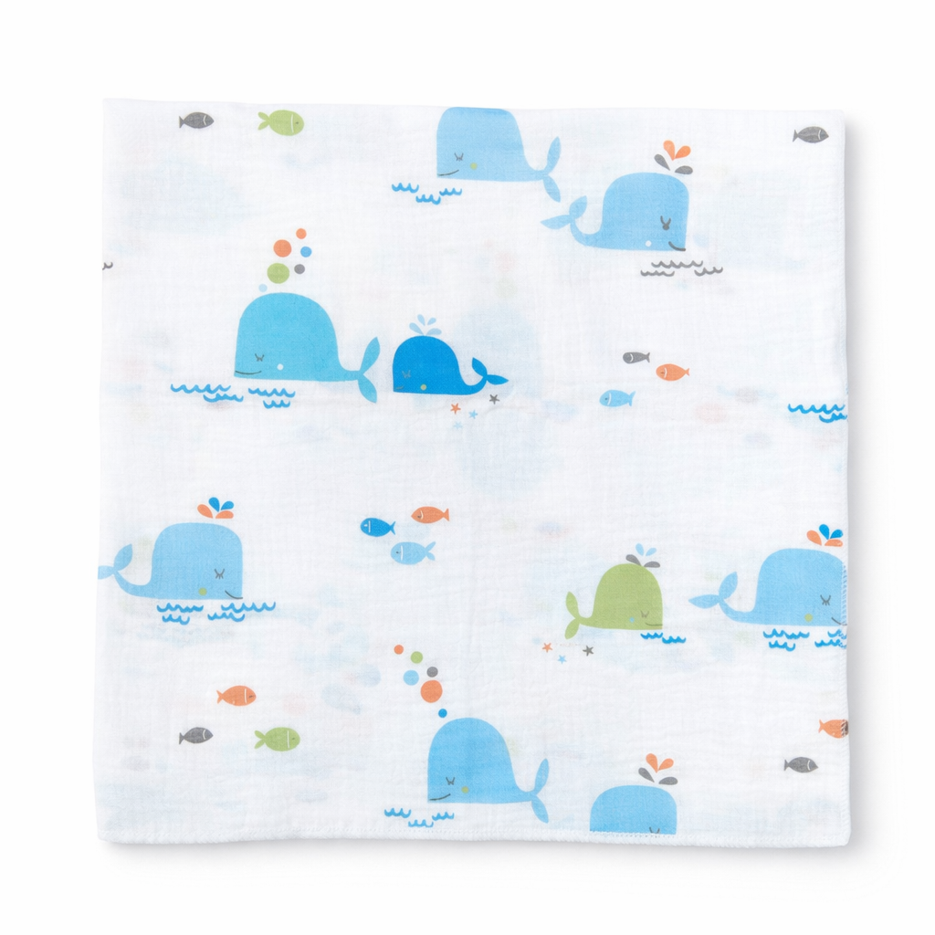 Dolphin Printed Crinkled Muslin Towel – Lightweight Cotton Towel for Babies ( 75 * 75 CM )