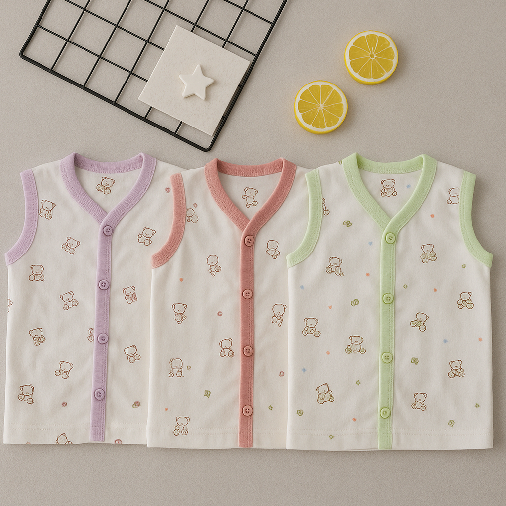 Keep your little one cozy and stylish with this Jabla Combo Set of 3. Specially designed for newborns and infants (0-6 months), each vest is made from ultra-soft cotton that’s gentle on delicate skin. These sleeveless jhablas feature a front tie/knot design for easy and fuss-free changing. With bright colors and charming prints, this set is a practical and delightful addition to your baby’s wardrobe. Whether it’s for daily use or a thoughtful baby shower gift, this combo offers comfort, style, and convenience in one.