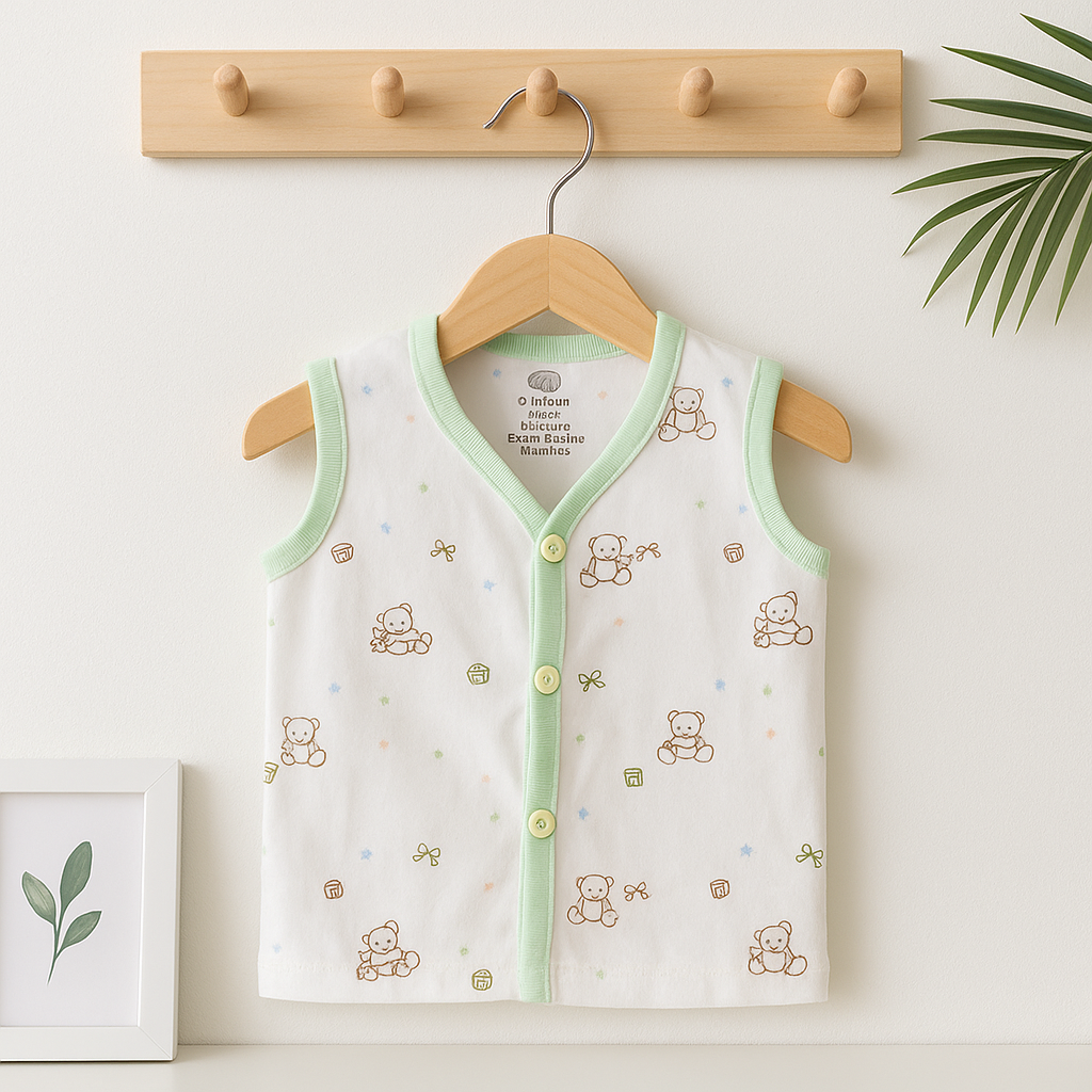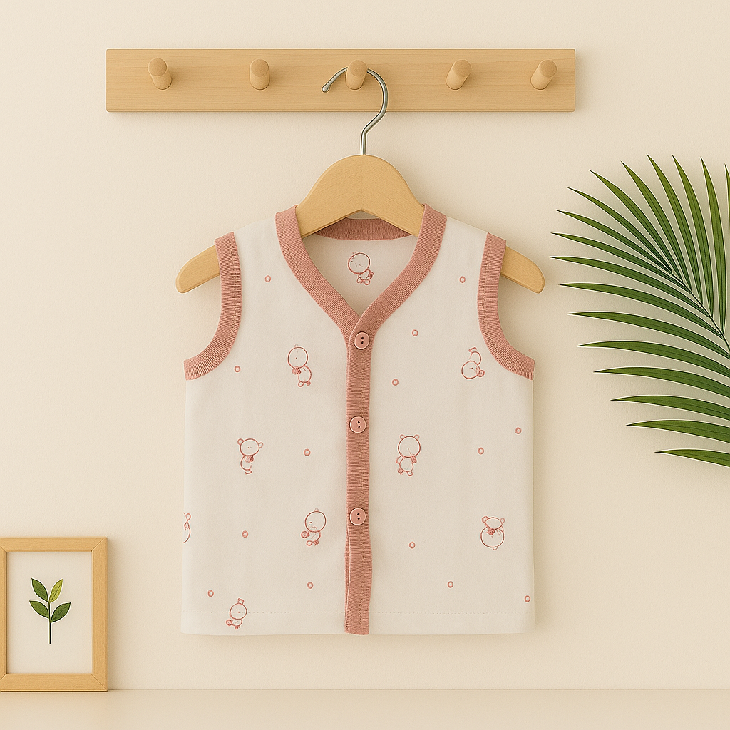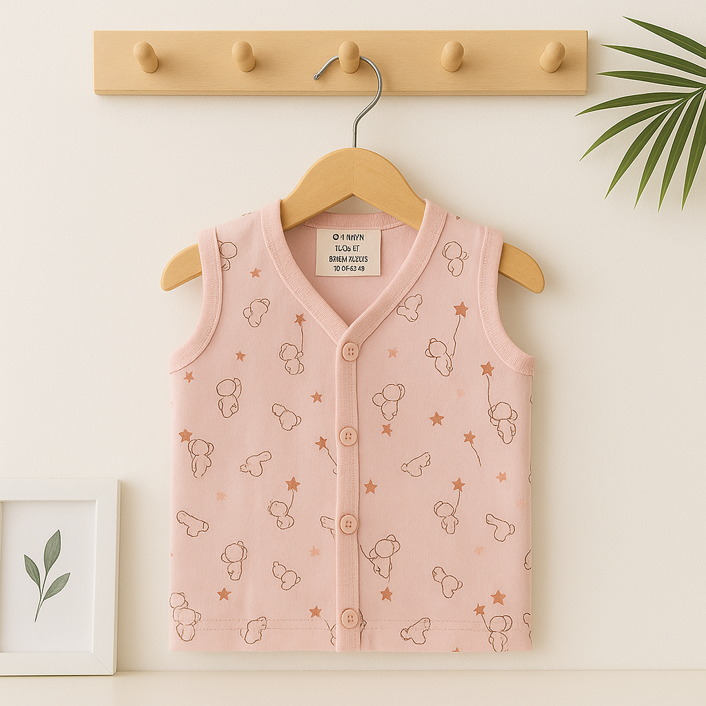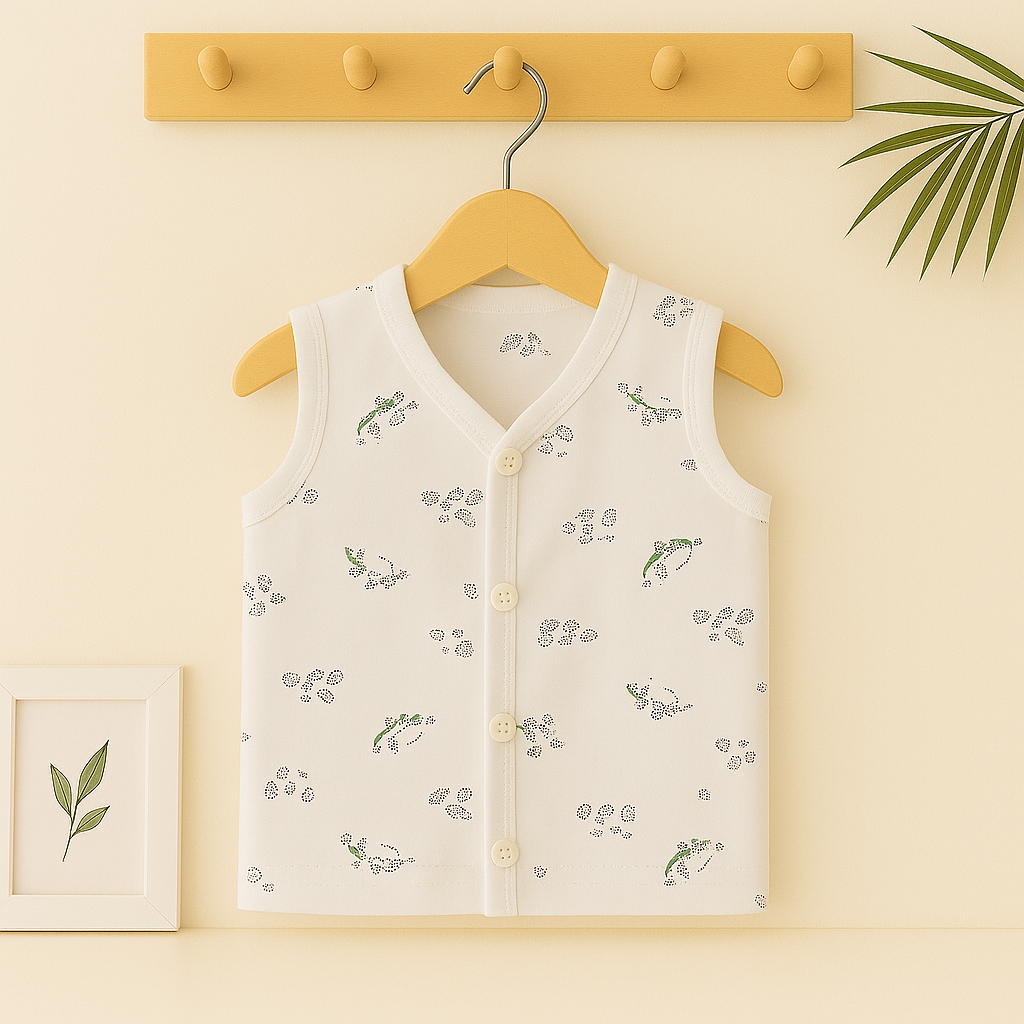 Keep your baby breezy and fuss-free in this soft sleeveless jabla – an essential addition to any newborn wardrobe. Pair it with soft bottoms or wear solo for all-day comfort.