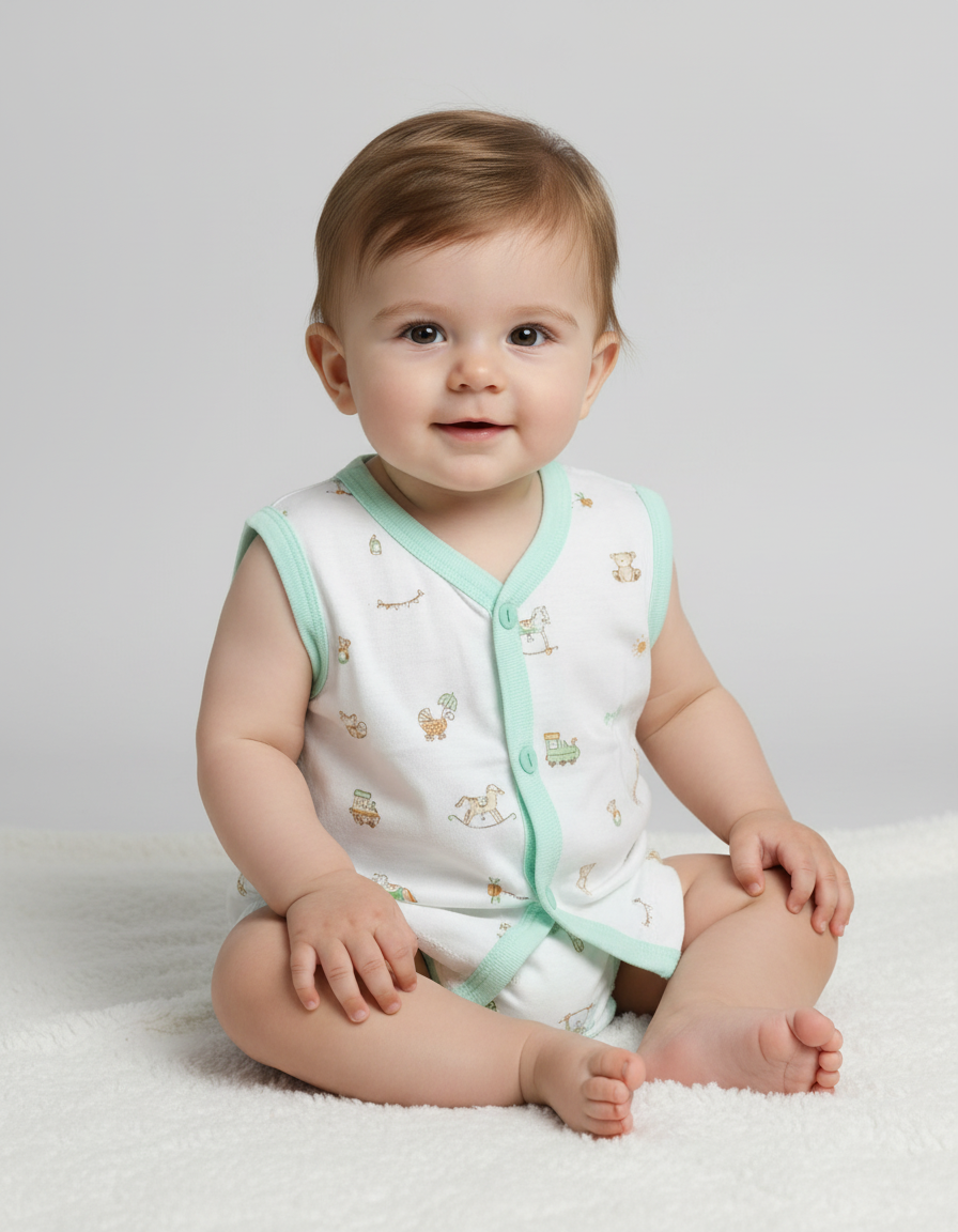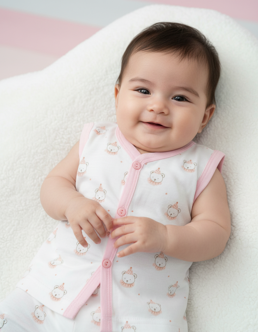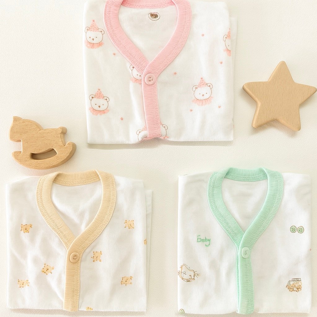 This full-sleeve jabla set of 3 is made with premium cotton, providing softness, breathability, and all-day comfort for newborns and infants. The front-open button closure makes dressing and changing simple, while the pastel border designs (pink, yellow, green) with cute animal prints bring charm to everyday wear. Gentle on sensitive skin and durable for repeated washes, this set is ideal for both baby boys and girls, making it a thoughtful gift choice.