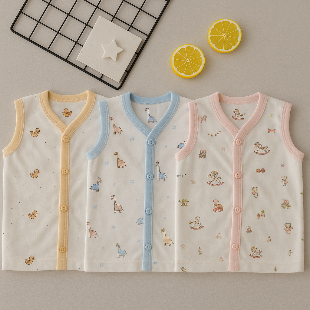 Keep your little one cozy and stylish with this Jabla Combo Set of 3. Specially designed for newborns and infants (0-6 months), each vest is made from ultra-soft cotton that’s gentle on delicate skin. These sleeveless jhablas feature a front tie/knot design for easy and fuss-free changing. With bright colors and charming prints, this set is a practical and delightful addition to your baby’s wardrobe. Whether it’s for daily use or a thoughtful baby shower gift, this combo offers comfort, style, and convenience in one.