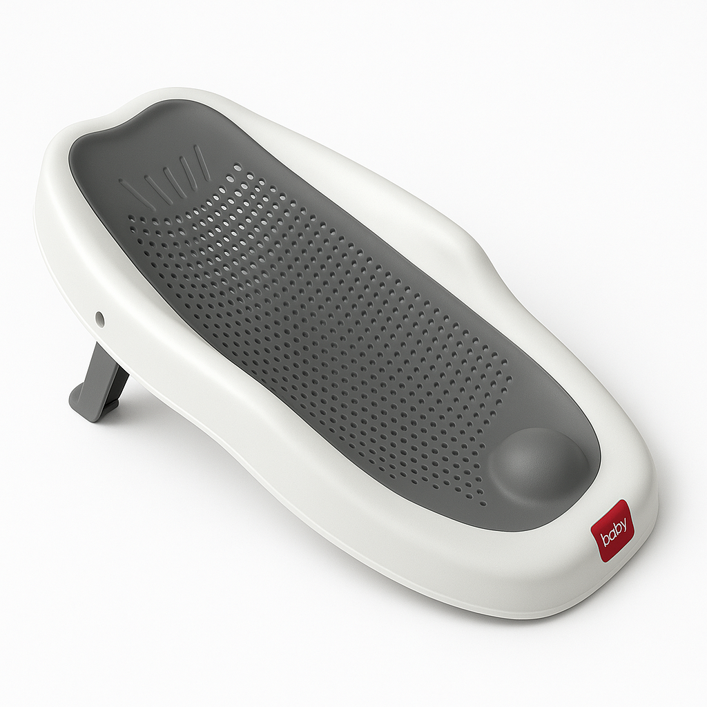 The Soft Rubber Newborn Baby Bath Rack is designed ingeniously to replicate the cozy comfort of a mother's uterus during bath time. Crafted from soft, supple rubber, it envelops newborns in a gentle embrace, fostering a sense of security and relaxation. The rack's ergonomic shape cradles the baby in a natural position, promoting a soothing bathing experience. With a non-slip surface and smooth, rounded edges, it ensures utmost safety and prevents any discomfort. Compatible with most standard baby bathtubs or sinks, the Polka Tots bath rack facilitates easy cleaning and water drainage, maintaining optimal hygiene. Lightweight and portable, this rack is perfect for both home use and travel, offering a dependable solution that mimics the nurturing environment of a mother's womb.