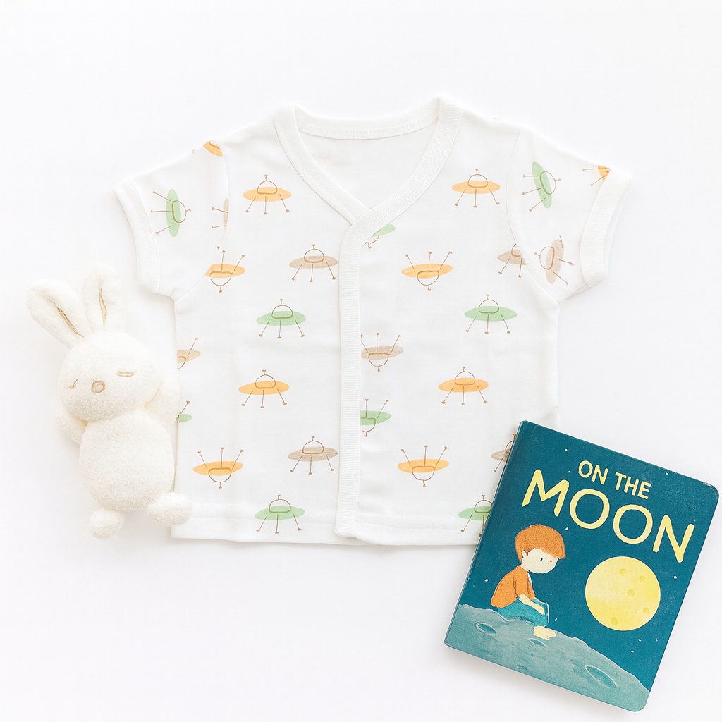 This baby jabla is made from 100% premium cotton, offering softness, breathability, and comfort for your baby’s delicate skin. The short sleeves provide ease of movement, while the front-open button style ensures quick dressing and hassle-free changes. Adorned with adorable boat prints, it’s perfect for everyday wear, nap time, or outings. Machine washable, lightweight, and durable, this jabla is a must-have essential in every newborn’s wardrobe and a thoughtful gift option for baby showers.
