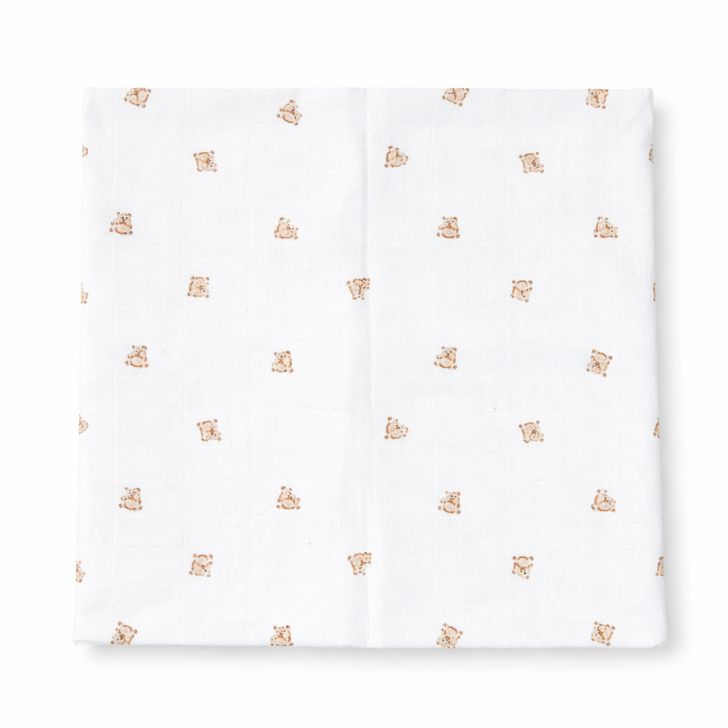 A practical essential for both home and travel, this muslin towel offers comfort and care with every use.