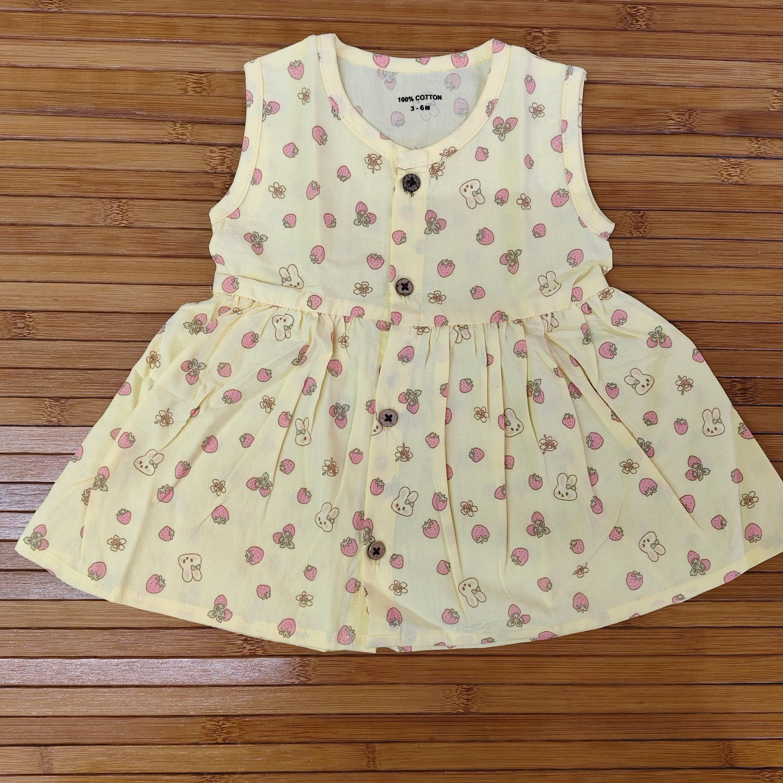 Soft Pink Cotton Frock with Cute Straberry Print ( NB to 1 Year)