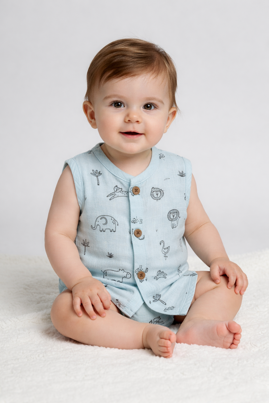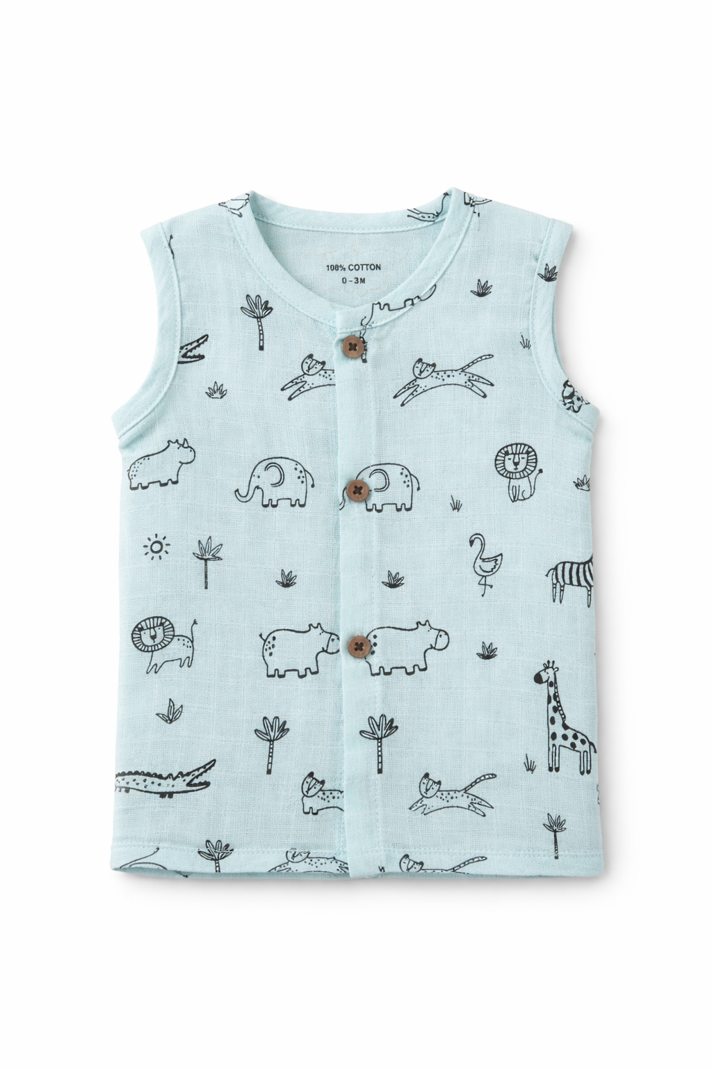 Baby Cotton Sleeveless Vest – Soft Blue Animal Print (Newborn)