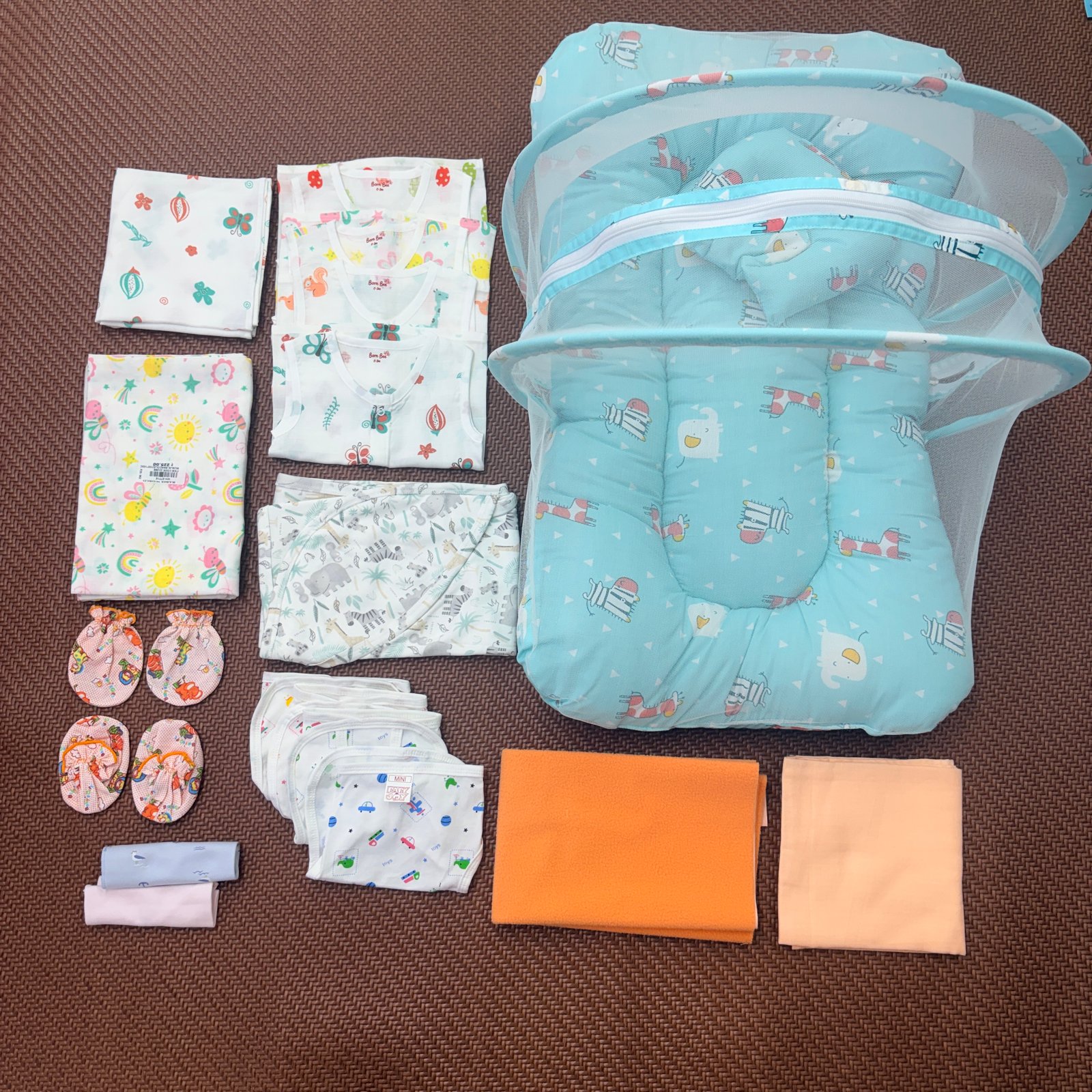 A premium 10-piece newborn kit designed with care and comfort in mind.