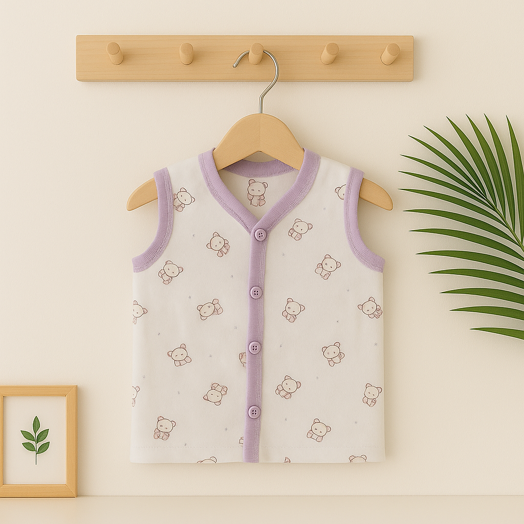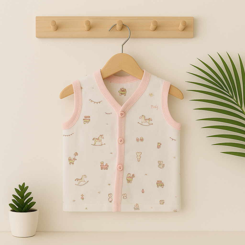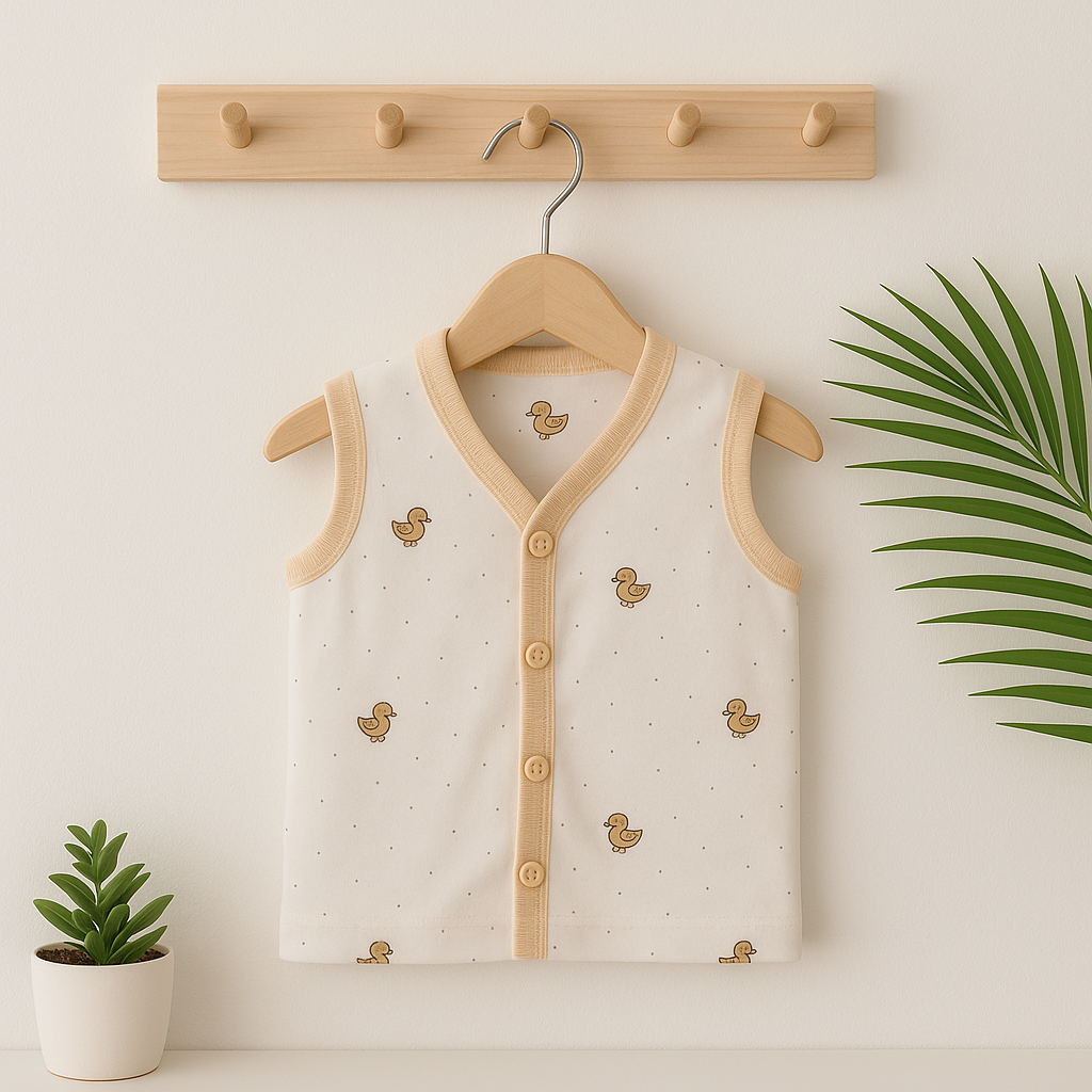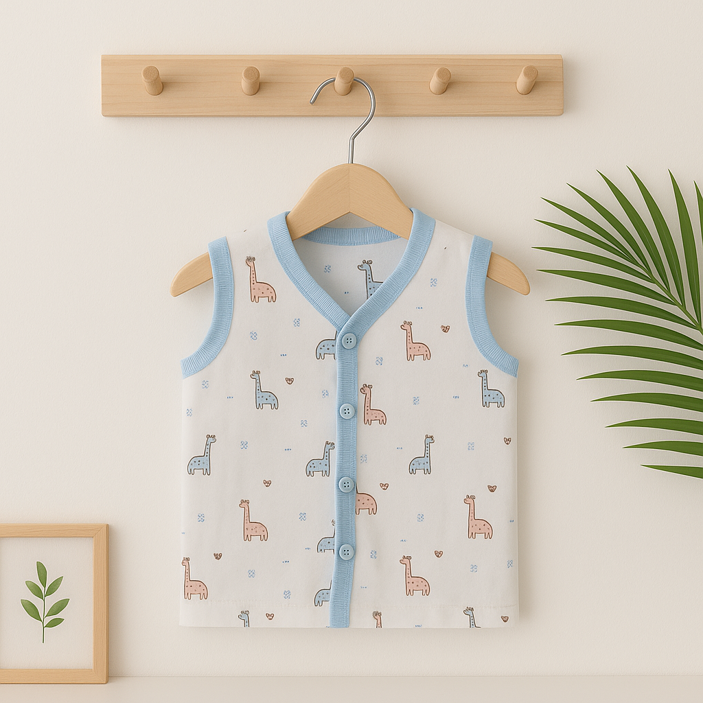 Keep your baby breezy and fuss-free in this soft sleeveless jabla – an essential addition to any newborn wardrobe. Pair it with soft bottoms or wear solo for all-day comfort.