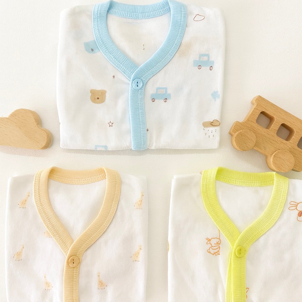This full-sleeve jabla set of 3 is made with premium cotton, providing softness, breathability, and all-day comfort for newborns and infants. The front-open button closure makes dressing and changing simple, while the pastel border designs (pink, yellow, green) with cute animal prints bring charm to everyday wear. Gentle on sensitive skin and durable for repeated washes, this set is ideal for both baby boys and girls, making it a thoughtful gift choice.