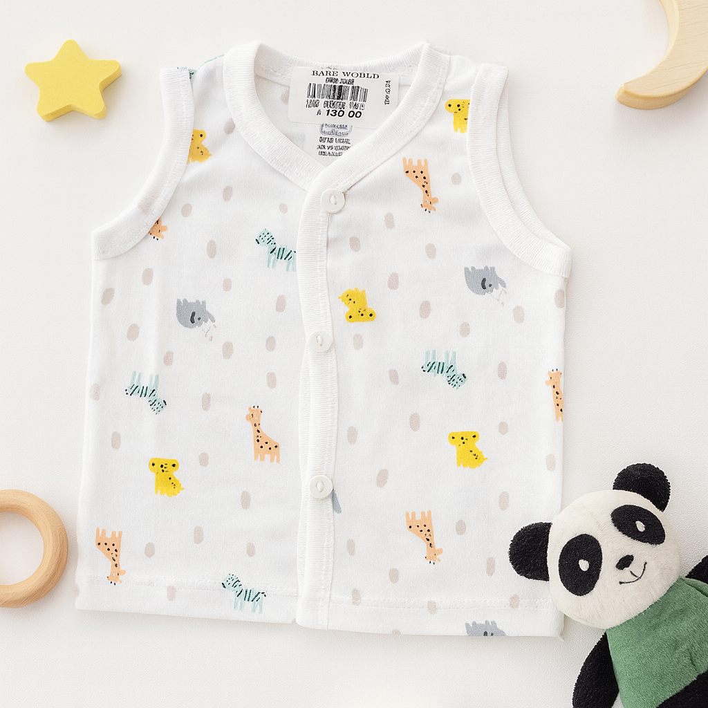 This baby jabla is crafted from 100% soft cotton, ensuring breathability, comfort, and safety for your little one’s sensitive skin. The sleeveless and lightweight design keeps babies cool, while the front-open button closure makes it easy to wear and remove. Featuring adorable panda prints, this jabla is both functional and stylish, perfect for daily wear, playtime, or sleep. Machine washable and durable, it’s an ideal addition to your newborn’s wardrobe and also makes a thoughtful gift for new parents.