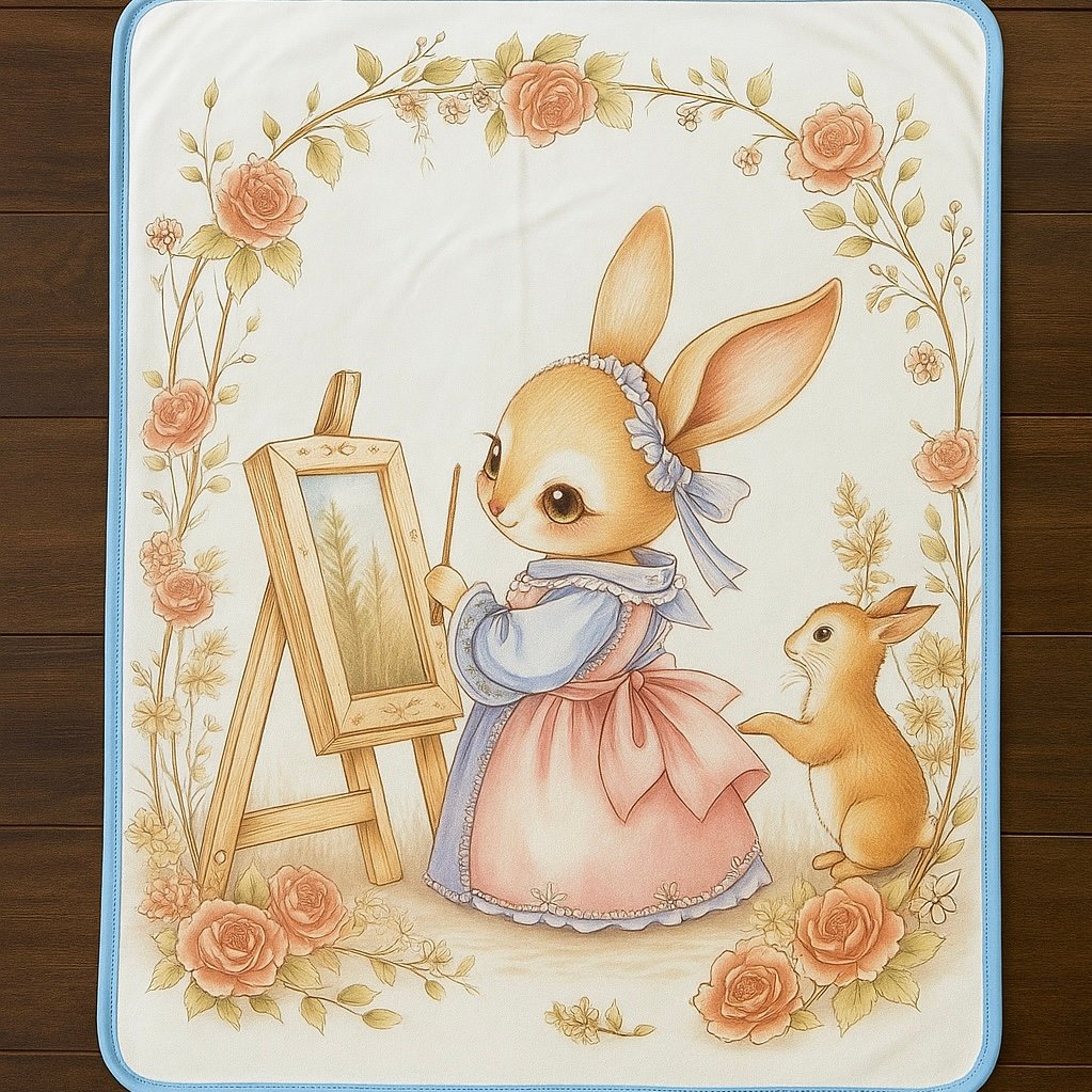 The charming print with bunnies, ducks, and flowers brings warmth and cheer to your nursery décor.